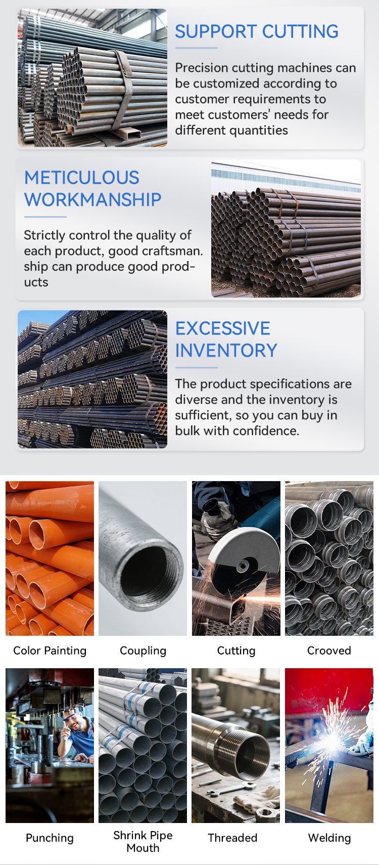 Hot dipped galvanized with zinc 220-260g/m²; Painted with black/varnish lacquer; Oil on the surface to prevent rust; Bare pipe without painting; Epoxy painting/FBE coating/3PE coating |