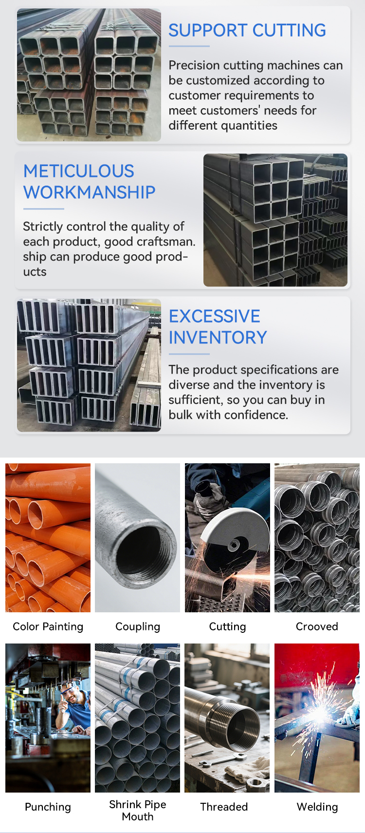 Pipes can be Customized according to customer's requirement on outside diameter and wall thickness withGalvanized coated or black painted(3PE, FBE, 3Pp)surface treatment.You can contact us to obtain more product lists.